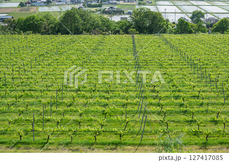 新緑のワイン用ブドウ畑【北安曇郡池田町】
