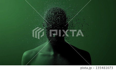 崩壊する人体のシルエット|粒子となって消えるデジタルの存在感