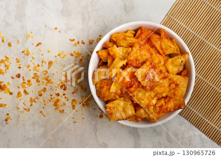 香り立つ四川風紅油ワンタンを白い器に盛り付け | 鮮やか唐辛子油