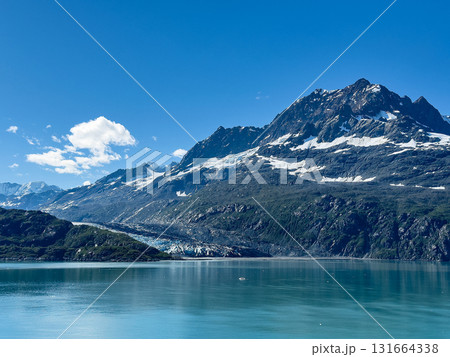 ランプルー氷河と山、グレイシャーベイ国立公園、世界遺産、2025年8月下旬撮影