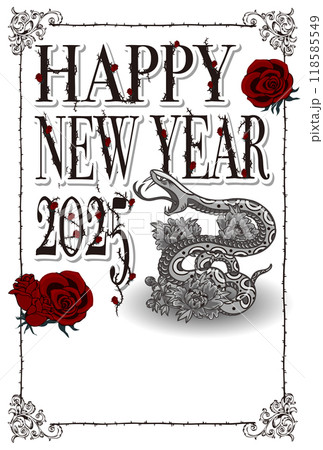 2025年賀状「ゴシックデザイン」ハッピーニューイヤー 英語添え書き付パターン