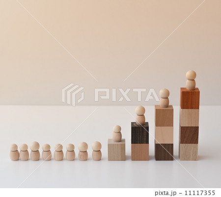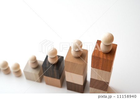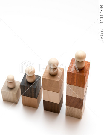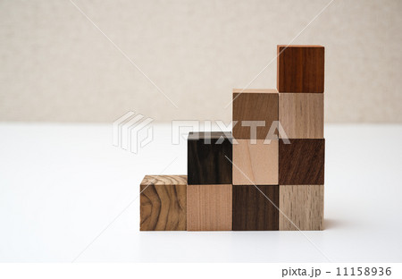水色背景に上昇イメージで右肩上がりに並べられた積み木