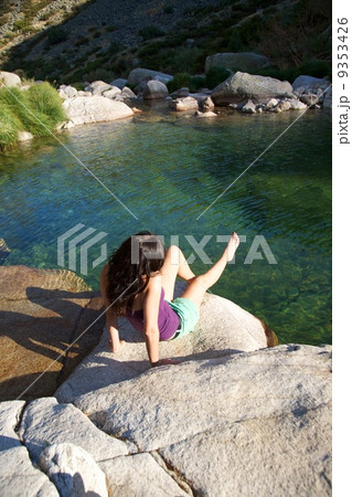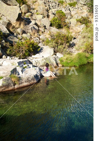 woman sitting in a lake at Gredos