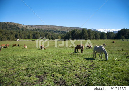 horses grazing in avila