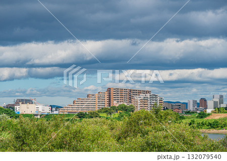 淀川右岸高槻市から灰色の雲に覆われた枚方市方面の眺め