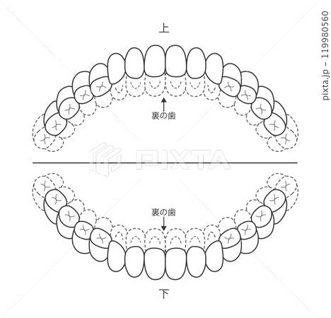 白黒 永久歯列期の磨き残しチェックシート 染め出しイラスト