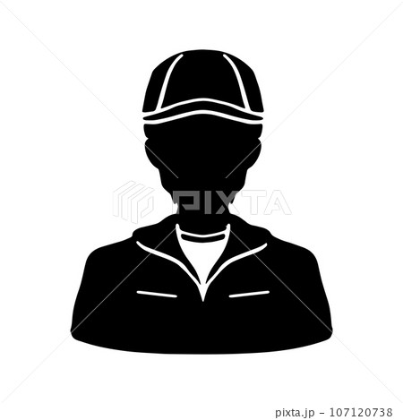 帽子をかぶった作業服の男性 シルエットイラスト 黒