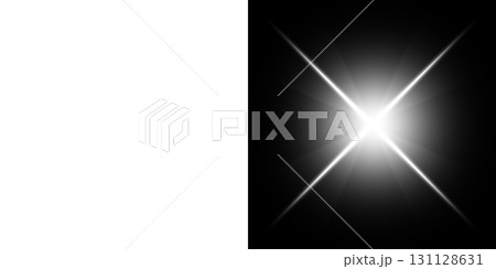 左が透明で右が黒背景の白い光の放射