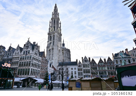 マルクト広場からギルドハウスとアントワープ聖母大聖堂