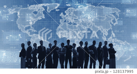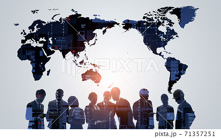 グローバルビジネスイメージ 会議するビジネスグループ パートナーシップ 世界地図