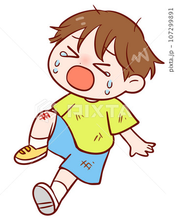 子どもが転んでケガをし泣いているイラスト カラー