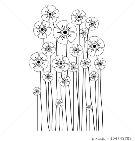 Simple black and white anemone flower line vector illustration. Wildflower poppy for greeting cards, wedding invitation and mothers day designs