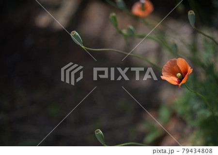 ナガミヒナゲシ ヒョロヒョロ伸びる茎とオレンジ色の花