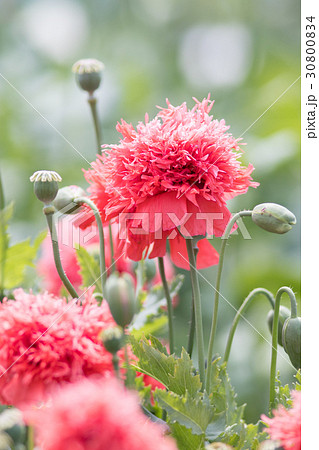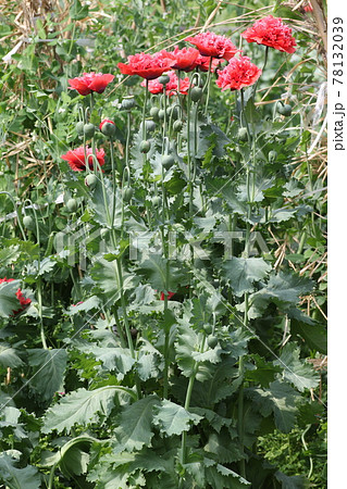 ケシ・芥子の花、赤。八重ソムニフェルム種