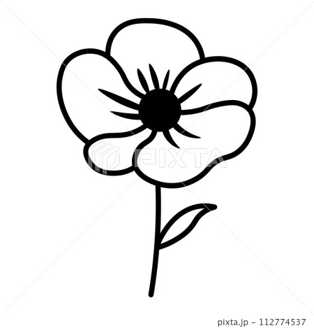Simple black and white anemone flower line vector illustration. Wildflower poppy for greeting cards, wedding invitation and mothers day designs
