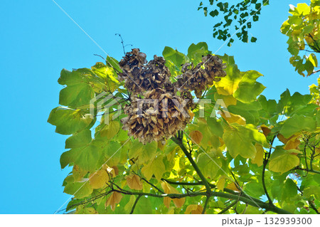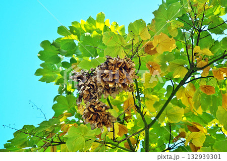 広島の被爆樹木二世 アオギリの実(夏、八月、秦野市)