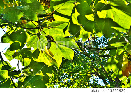 広島の被爆樹木二世 アオギリの樹形(夏、八月、秦野市)