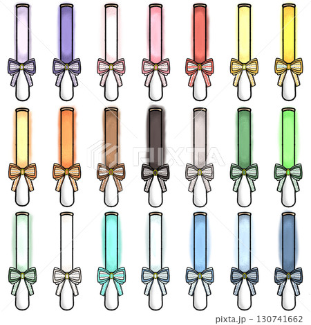 リボン付きのサイリウム、ペンライトのイラスト、アイコン_推し色