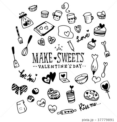 カフェ・スイーツの手描きイラストアイコンセット 線画