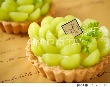 シャインマスカットのタルト フレンチ文字背景 (左スペース)