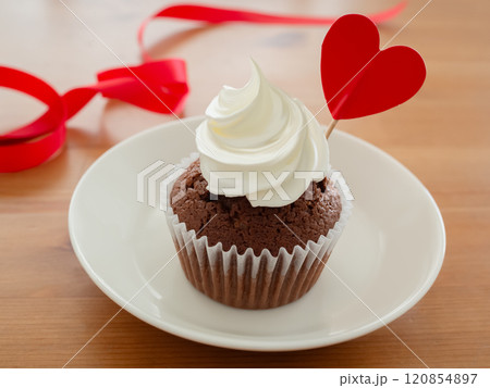 ホイップクリームを乗せたチョコレートマフィン バレンタイン