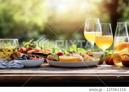 Sunny garden party features a table filled with refreshing summer dishes and drinks