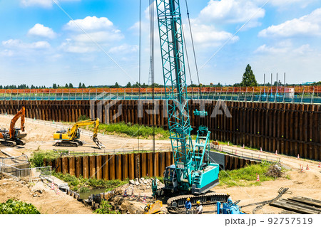 埼玉県入間川 樋菅改築工事 重機クローラークレーン
