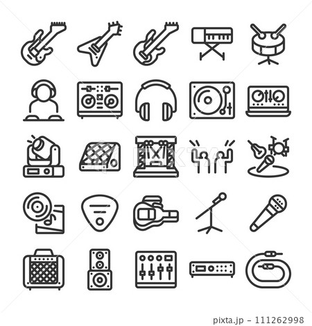 デジタル機器に関係するアイコンのイラストセット(罫線ほそめ)