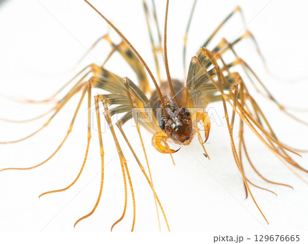 住宅の壁に這うゲジ(ゲジゲジ)の写真