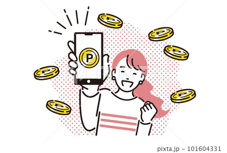 スマホでポイントをゲットしたイメージイラスト
