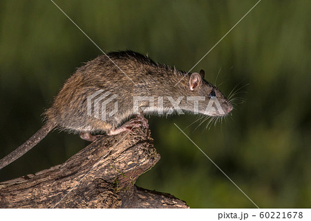 Wild brown rat about to jump
