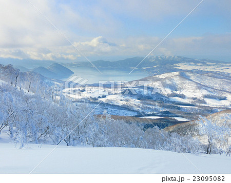 スキー場のゲレンデ 雪と青空と太陽 冬素材