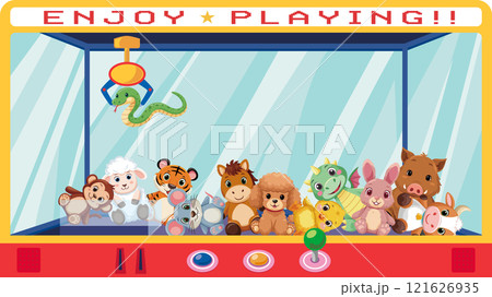 干支のぬいぐるみが入ったクレーンゲームの背景イラスト素材