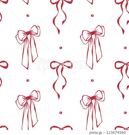 Red bows. Coquette core. Seamless pattern EPS vector hand drawn for cute core, girly, romantic, greeting, wedding design, textile, wrapping, fabric, wallpaper and scrapbooking paper. Outline sketch.