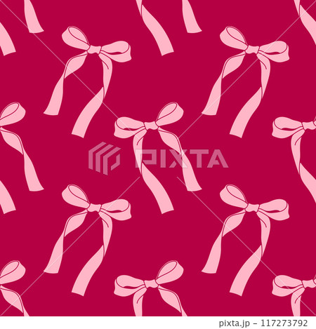 Seamless pattern with red pink bows. Girly background. Repeating print
