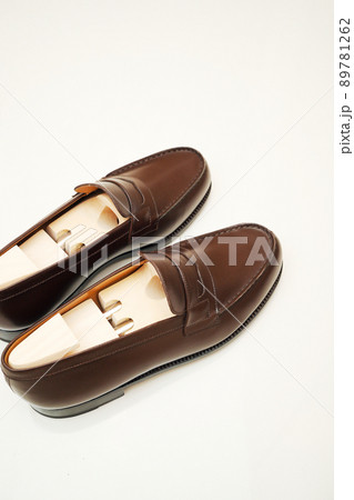 白い背景で撮影されたスタンダードな革靴(コインローファー)