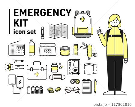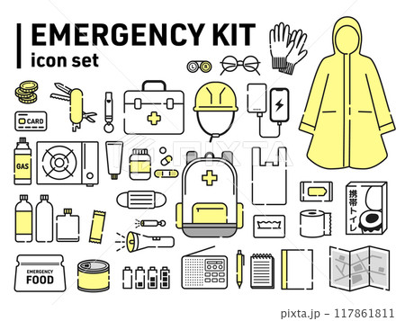 防災グッズ アイテム アイコン 地震 火災 emergency disaster