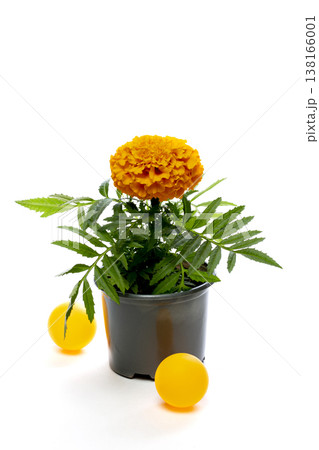 Tagetis erectaIncaII Gold in a pot on a white background