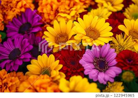 Vibrant Autumn Flower Bouquet with Sunflowers, Daisies, and Chrysanthemums in Close-Up