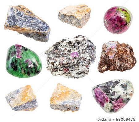 set of various Corundum rock and crystals isolated