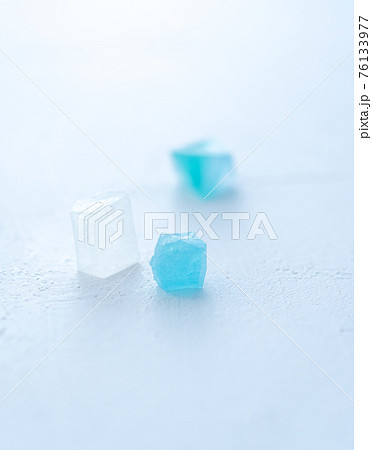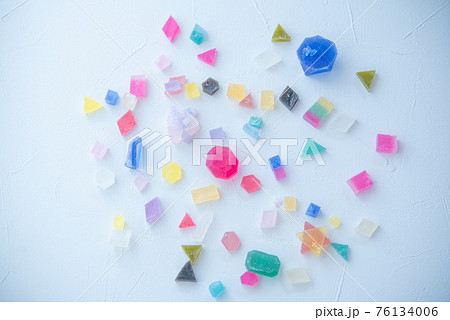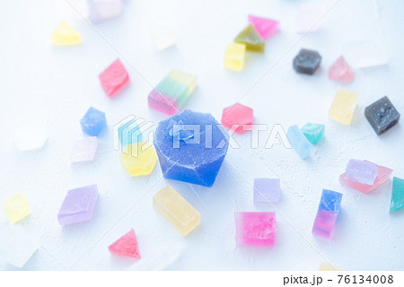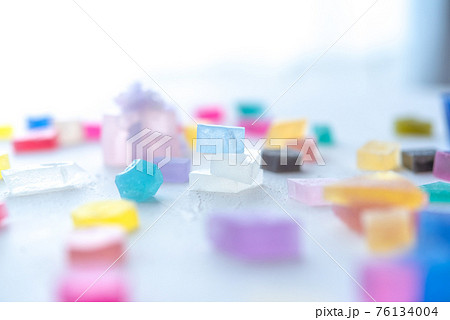 光が透過して透明感のある色とりどりの琥珀糖 カラフルな宝石 キラキラ