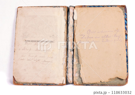 Old antique vintage open book on white