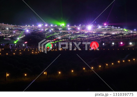 ロマンチック茨城(丘のふもとの里にはマスコット達も仲間に入ってライトショーを楽しむ。)ひたち海浜公園