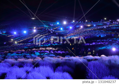 ロマンチック茨城(夜のとばりが落ち行く頃、ライトアップのショーが始まる。)国営ひたち海浜公園・コキア