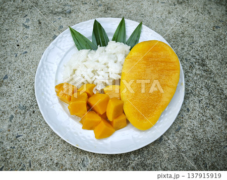 Sticky rice and sliced mango with coconut cream