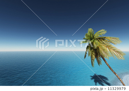 トロピカル素材 穏やかな海にウミガメの赤ちゃん
