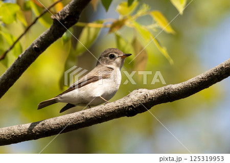 新緑の中、さえずる可愛いコサメビタキ(ヒタキ科)東京都大田区東京港野鳥公園-2023年