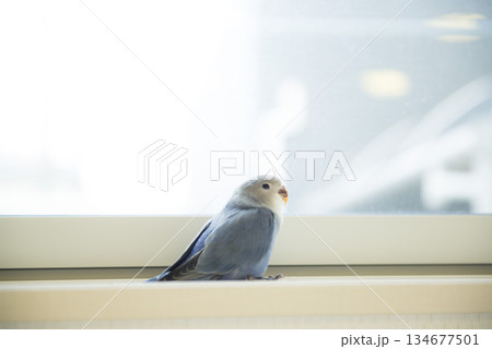 鮮やかな羽色のペットのコザクラインコ(後ろ姿)