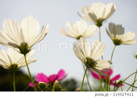 ピンク コスモス 秋桜 鮮やか 夕暮れ 秋