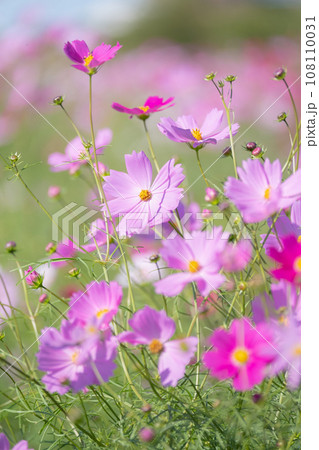 コスモス畑の背景 秋の風景 縦長